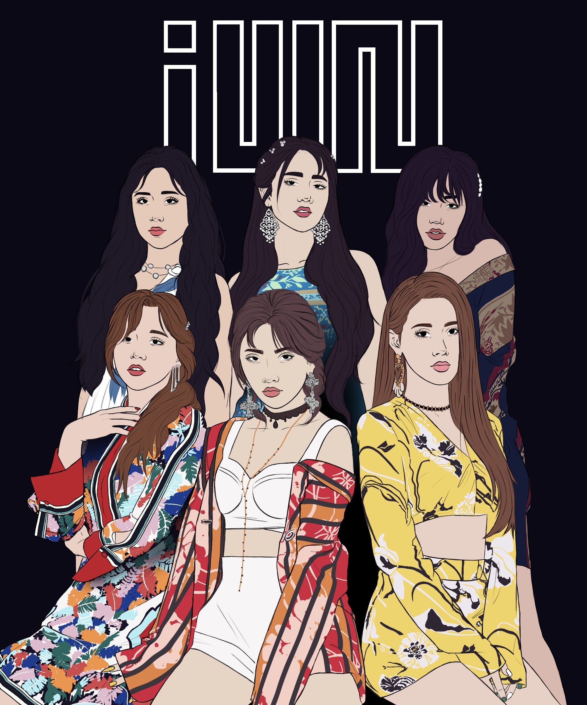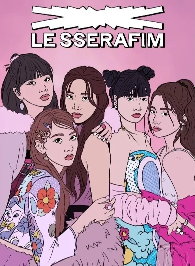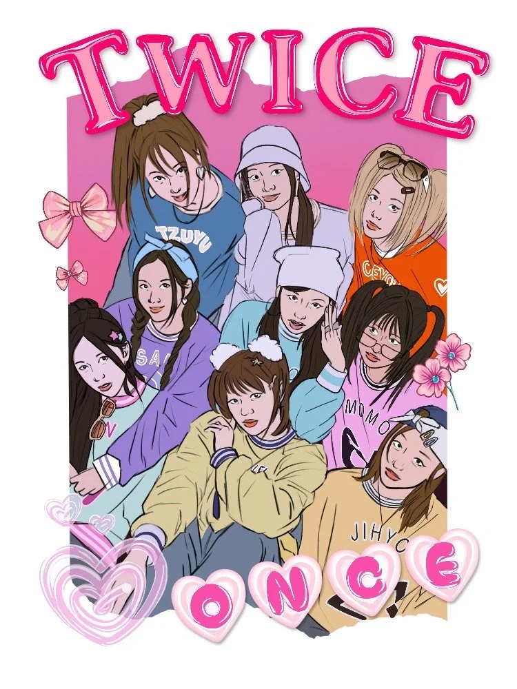 A digital illustration series that features different K-pop and global pop posters. It serves as a study in texture and detail. Flat color is used deliberately to keep a clean, graphic appearance. Patterns and styles add depth to the visuals.